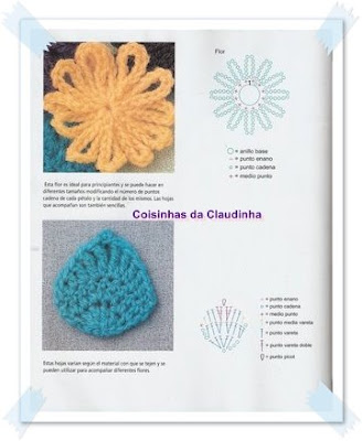 Na outra ponta do cachecol, prenda as folhas com a ajuda da agulha de croche, fazendo 2 nozinhos cada folha no p.b. de base.